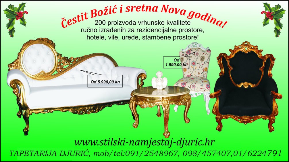 Tapetarija Djurić je svoj rad kao tapetarija započela davne 1974. god. Naša tradicija bazira se na iskustvu od 44 godine u tapeciranju i restauraciji namještaja, te se i dalje nastavlja kroz izradu stilskog namještaja po narudžbi, modernog namještaja po narudžbi, izradu tendi i kompletnog interijera i eksterijera za brodove, tapeciranje automobila interijera i eksterijera, tapeciranje vrata, zidova, pregradnih stijena .... za hotele, poslovne prostore, kuće, vikendice, vile, rezidencije... Naše bogato iskustvo, kvalitetan rad, opremljenost vrhunskim strojevima, sve to oplemenjeno stručnom radnom snagom garancija su da će svaki naš projekt biti u skladu sa najvišim standardima kvalitete, estetike i funkcionalnosti. Dobrodošli u ruke profesionalaca!